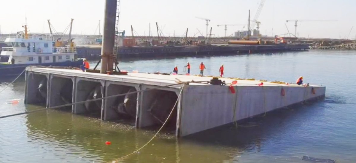 The project requires the installation of 123 large box culverts, each measuring 24 meters in length, 18 meters in width, 5 meters in height, and weighing 1850 tons. Our technical team and the client's construction team overcame challenges and determined the use of pneumatic floats for culvert installation. Each culvert utilizes 20 large pneumatic floats, providing 1200 tons of buoyancy, allowing the culverts to float steadily on the sea surface and completely eliminating the need for large floating cranes, significantly reducing installation costs. This method has gradually become the preferred buoyant installation solution for offshore culvert projects in petrochemical and nuclear power industries.